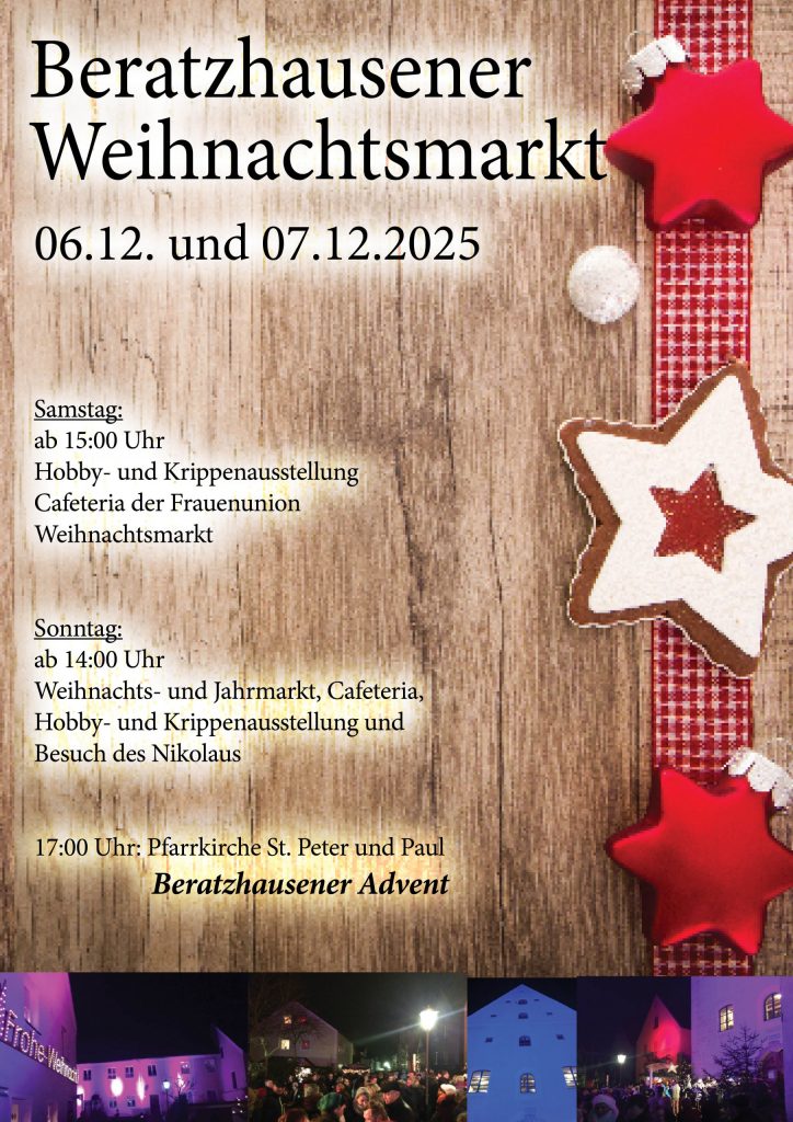Am Wochenende 6. und 7. Dezember findet wieder der Romantische Weihnachtsmarkt in Beratzhausen statt, Zehentstadel, Schloßhof, Paracelsus-Straße.